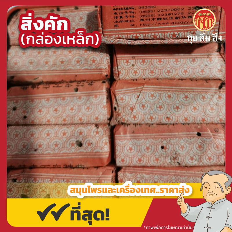 รายละเอียด : สิ่งคัก ไม่ใช่สมุนไพรจากพืชชนิดเดียว แต่เป็น ผลิตภัณฑ์ที่ได้จากการหมักสมุนไพรหลายชนิดร่วมกับแป้งหรือข้าวสาลี โดยใช้จุลินทรีย์ตามธรรมชาติในกระบวนการหมัก ให้เกิดเอนไซม์ช่วยย่อยอาหาร วัตถุดิบหลักในการหมักได้แก่: แป้งสาลี ข้าวเหนียว, เถาโหงว (Artemisia annua), ใบป๋วยเล้ง ใบหม่อน, ขิง, สมุนไพรจีนอื่นตามตำรับ ลักษณะเป็นแผ่นหนา แตกง่าย สีน้ำตาลแดงถึงดำ มีกลิ่นหมักเฉพาะตัว รสหวานอมเฝื่อนเล็กน้อย มีความเป็นเอนไซม์ธรรมชาติ