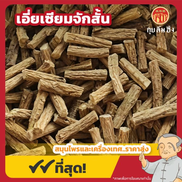 รายละเอียด : เอี่ยเซียม (ภาษาจีนกลาง: 粘柴胡 / Zhi Mu, บางครั้งเรียกอีกชื่อว่า Radix Anemarrhenae) เป็นสมุนไพรจีนที่ใช้กันมานานนับพันปีในตำรับยาจีน เอี่ยเซียมได้จากเหง้าของพืชชื่อ Anemarrhena asphodeloides ซึ่งมีลักษณะเป็นแผ่นหรือแท่งยาว ผิวสีเหลืองทองอมส้ม เนื้อเหนียวเล็กน้อย มีกลิ่นหอมอ่อน รสหวานปนขมเล็กน้อย นิยมใช้แบบตากแห้งและหั่นบาง ใช้ต้มร่วมกับสมุนไพรจีนชนิดอื่น