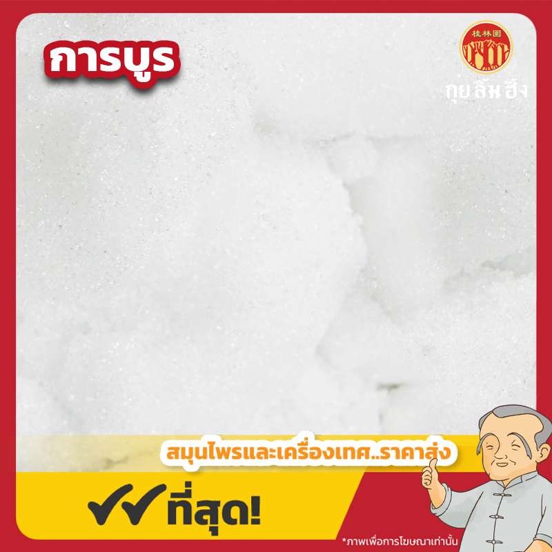 รายละเอียด : การบูร (Camphor) เป็นสารธรรมชาติที่มีกลิ่นหอมเฉพาะตัว ได้จาก ไม้การบูร (Cinnamomum camphora) ซึ่งเป็นไม้ยืนต้นในวงศ์อบเชย ต้นกำเนิดมาจากประเทศจีน ญี่ปุ่น และบางประเทศในเอเชียตะวันออกเฉียงใต้ ลักษณะเป็นผลึกแข็ง สีขาวหรือขาวใส เมื่อสัมผัสผิวหนังจะให้ความรู้สึกเย็น มีกลิ่นหอมฉุนเฉพาะ เย็นสดชื่น
