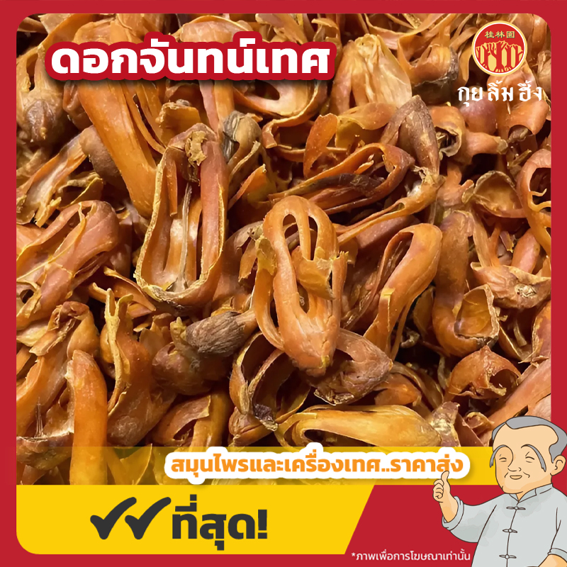 รายละเอียด : ดอกจันทน์ ที่เรารู้จักกันนั้น จริง ๆ แล้วไม่ใช่ดอกไม้ แต่เป็น เยื่อหุ้มเมล็ดของผลจันทน์เทศ (Nutmeg) มีชื่อภาษาอังกฤษว่า Mace และเป็นส่วนหนึ่งของพืช Myristica fragrans ซึ่งให้ทั้ง “ลูกจันทน์” (เมล็ดด้านใน) และ “ดอกจันทน์” (เยื่อหุ้มด้านนอกเมล็ด) มีสีแดงเข้มหรือส้มสดขณะสด เมื่อแห้งแล้วจะกลายเป็นสีน้ำตาลทอง มีกลิ่นหอมเฉพาะตัว รสเผ็ดร้อนนิด ๆ คล้ายลูกจันทน์ แต่หอมเบากว่าและละเอียดกว่า