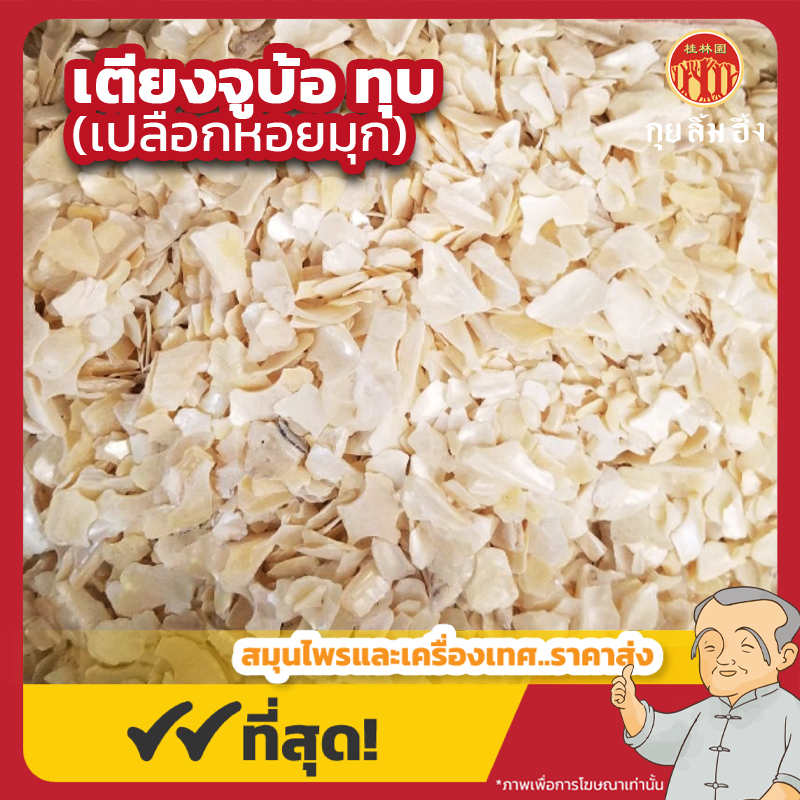 รายละเอียด : เตียงจูบ้อ หรือ แม่ของมุก คือ เปลือกชั้นในของหอยมุก (เช่น หอยเป๋าฮื้อ หรือหอยนางรมบางชนิด) ซึ่งมีพื้นผิวเป็นมุก เงาแวววาว สีขาวเงินอมชมพูหรือเขียวอ่อน มีความแข็ง ใช้บดเป็นผงละเอียดก่อนนำมาใช้ในทางยา บางครั้งนำมาบดร่วมกับไข่มุกแท้ (珍珠) ในทางวัฒนธรรมจีน เปลือกหอยมุกถือเป็นสัญลักษณ์ของความสงบ ความเย็น และความสวยงาม และเชื่อว่ามีพลังในการปรับสมดุลหยินหยาง