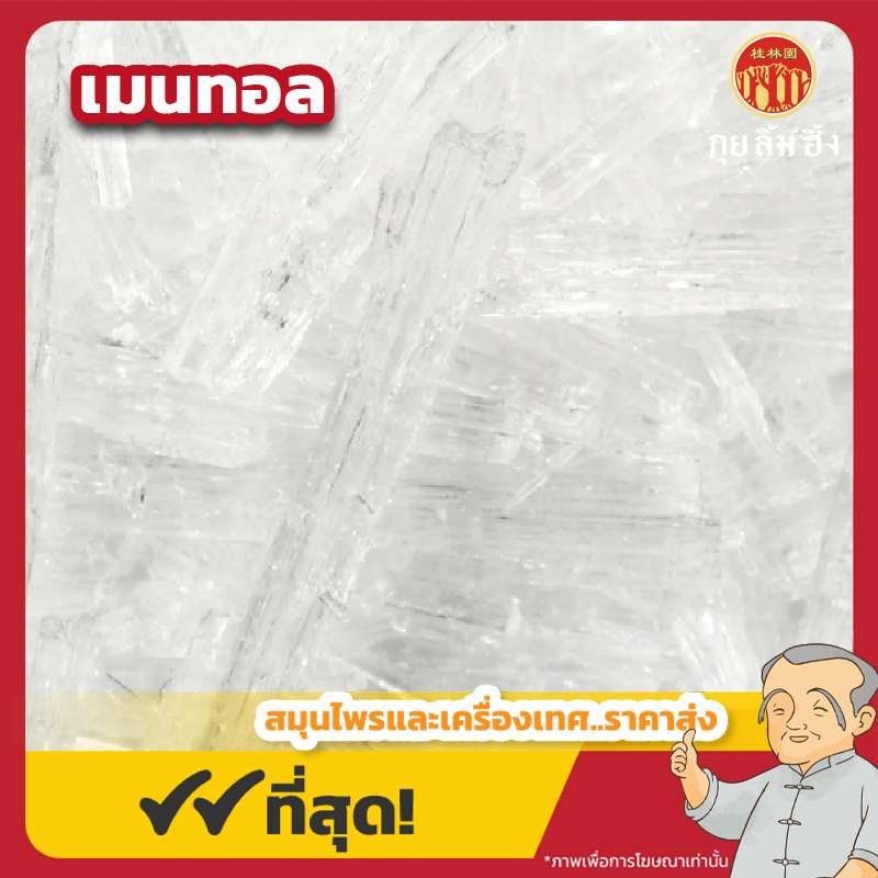 รายละเอียด : เป็นสารประกอบธรรมชาติที่มีลักษณะเป็นผลึกใสหรือสีขาว มีกลิ่นหอมเย็นชัดเจน เมื่อสัมผัสจะให้ความรู้สึกเย็นสดชื่น ละลายได้ในแอลกอฮอล์ น้ำมัน และไขมัน เมนทอลได้มาจากน้ำมันหอมระเหยของพืชในกลุ่ม สะระแหน่ (Peppermint) โดยเฉพาะสายพันธุ์ Mentha arvensis และ Mentha piperita ซึ่งนิยมปลูกในจีน อินเดีย และญี่ปุ่น