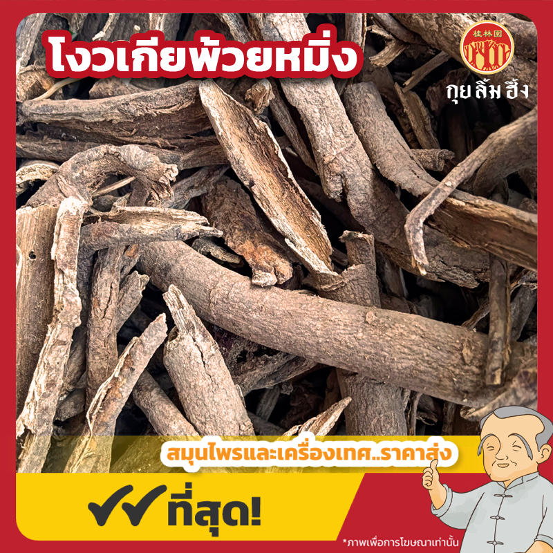รายละเอียด : โงวเกียพ้วย (五加皮) เป็นชื่อสมุนไพรจีนที่หมายถึง “เปลือกของพืชห้าแฉก” หรือ “เปลือกอู่เจีย” ซึ่งมักหมายถึงเปลือกรากของพืชในวงศ์ Eleutherococcus โดยเฉพาะพืชชนิด Eleutherococcus senticosus ซึ่งอยู่ในวงศ์เดียวกับโสม เปลือกของพืชชนิดนี้มีลักษณะเป็นเปลือกแห้ง สีน้ำตาลอมเทา มีรสขมเล็กน้อยและมีกลิ่นหอมเฉพาะตัว นิยมใช้เปลือกรากหรือเปลือกลำต้นแห้งในการปรุงเป็นยาสมุนไพร