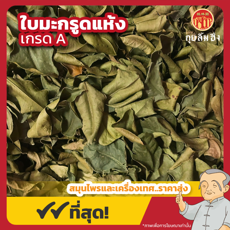 รายละเอียด : ใบมะกรูดเป็นใบของต้นมะกรูด (Citrus hystrix) ซึ่งเป็นไม้พุ่มขนาดเล็กถึงกลาง สูงประมาณ 2–5 เมตร ใบมีลักษณะโดดเด่นคือใบประกอบชนิดมีสองตอน (ใบจริงและใบที่ดูคล้ายก้านใบแผ่กว้าง) ทำให้ดูเหมือนใบสองใบติดกัน กลิ่นหอมแรงเป็นเอกลักษณ์เฉพาะ ใบแห้งมักตากแห้งจนกรอบ หรืออบแห้ง กลิ่นจะยังคงหลงเหลือแม้จางลง ใบมะกรูดเป็นสมุนไพรพื้นบ้านที่ใช้ทั้งใน อาหารและยาพื้นบ้าน มาแต่โบราณ พบได้ทั่วไปในอาหารไทย อาหารลาว อินโดนีเซีย และมาเลเซีย และยังมีบทบาทในแพทย์แผนไทย