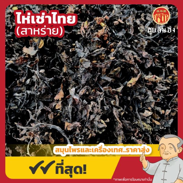 รายละเอียด : ไห่เช่า (海藻 / Hǎi zǎo) เป็นสาหร่ายทะเลชนิดหนึ่งที่ใช้กันมานานในแพทย์แผนจีนและอาหารจีน ลักษณะแห้งเป็นเส้นสีน้ำตาลเข้มหรือดำ ผิวนอกบางมัน มีความยืดหยุ่นเล็กน้อย กลิ่นทะเลอ่อน ๆ รสชาติเค็มนิด ๆ อมหวาน